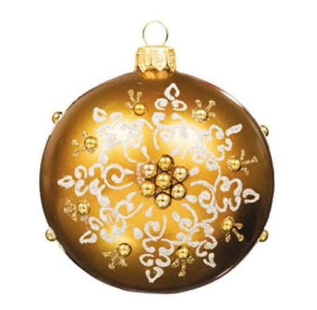 Шар золотой с серебристыми вифлеемскими звездами стекло ручная работа 8см