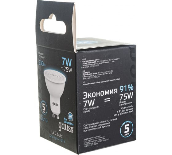 Лампа св/диод. Gauss MR16 7W 4100K GU10