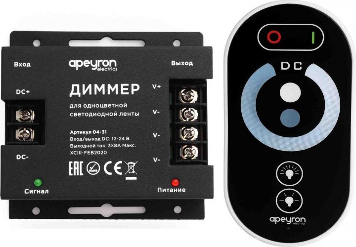 Диммер 12/24В 288/576Вт, 83*79*33мм, пульт сенсорный (б/бат), д/монохр. св/диод ленты