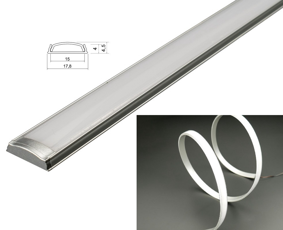 Профиль алюм.прямой встраиваемый для св/диод. ленты, анодированный, серебро, 1м