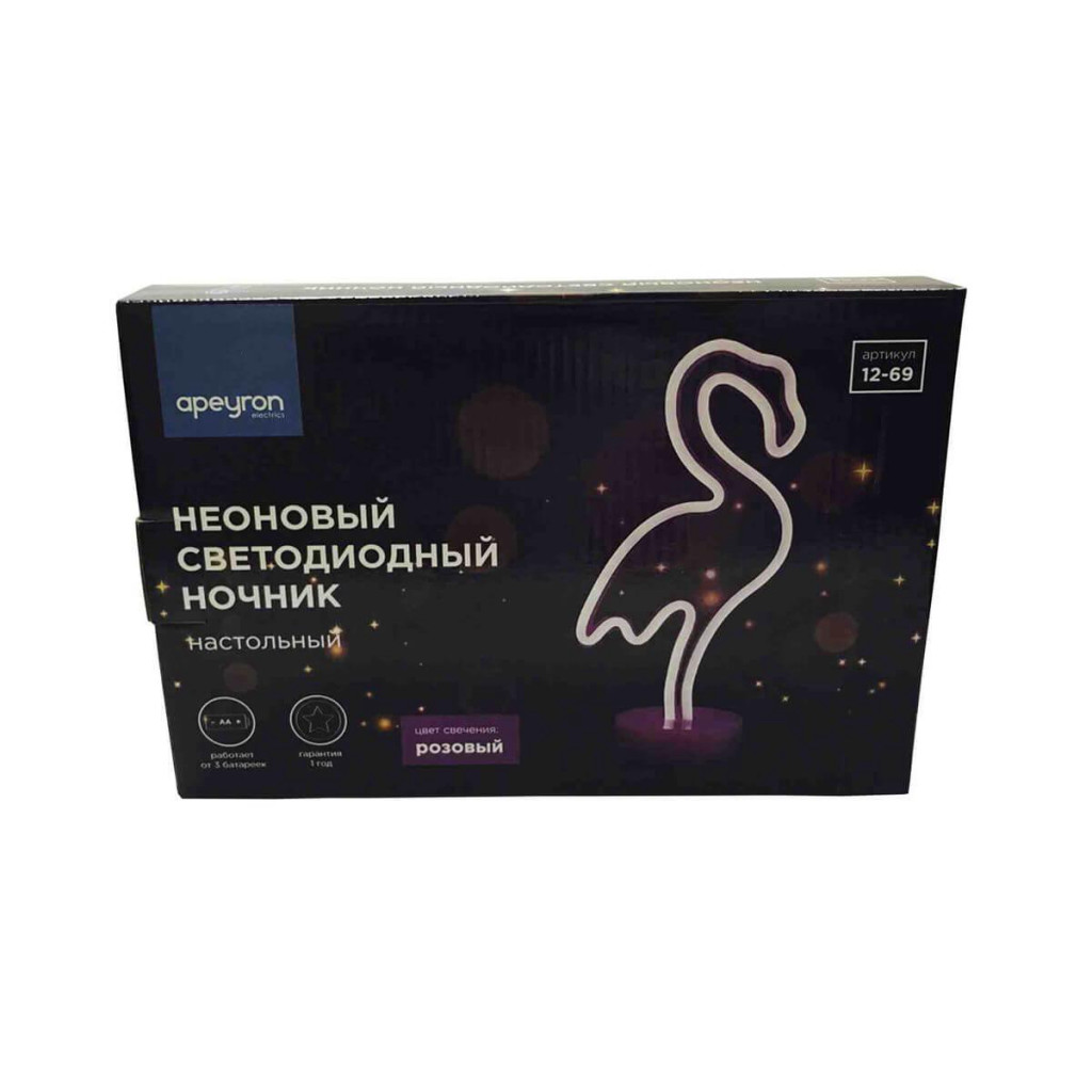 Светильник св/д наст. неон. Фламинго 3Вт 130*85*300мм цвет свечения розовый