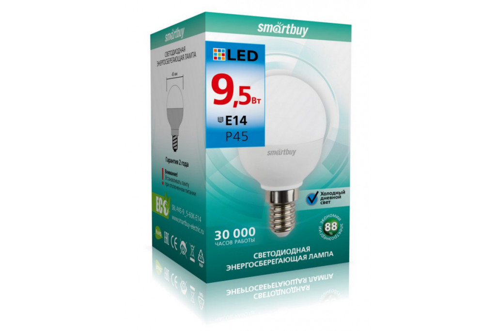 Лампа св/диод. Smarbuy ШАР 9,5W/E27/3000 (SBL-G45-9_5-30K-E27)