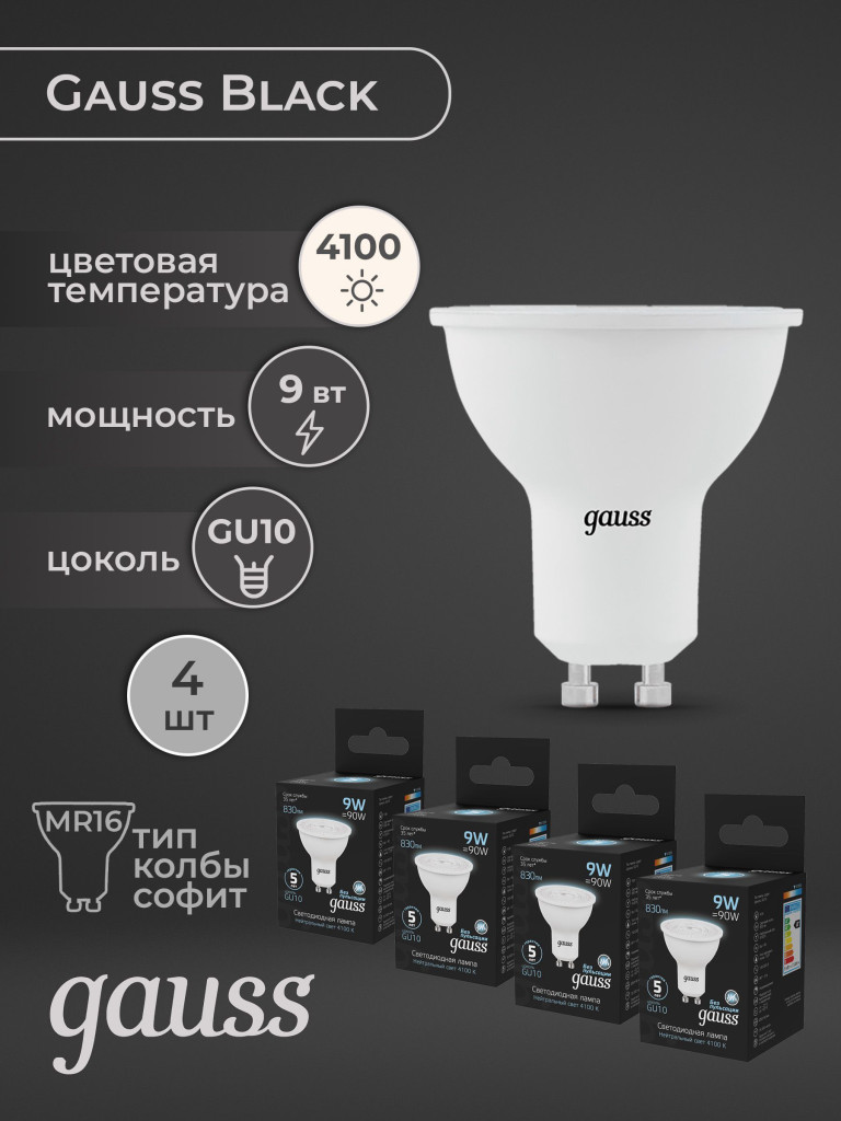 Лампа св/диод. Gauss LED GU10 9W 4100K