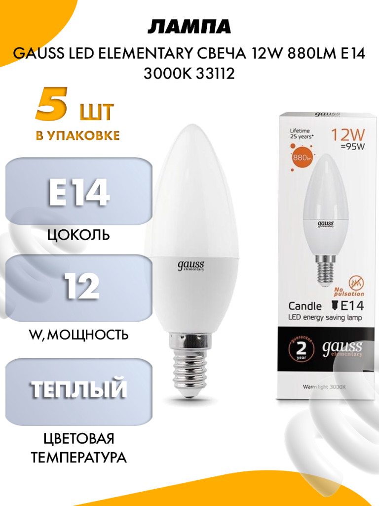 Лампа LED Gauss Elementary 12W E14 3000K свеча