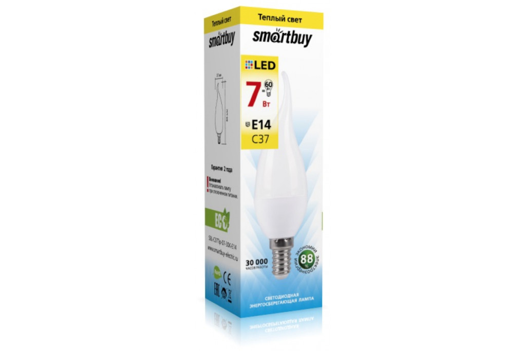 Лампа св/диод. Smarbuy СВЕЧА C37-12W/E27/6000 SBL-C37-12-60K-E27