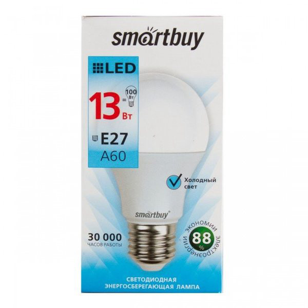 Лампа светодиодная Smartbuy A60 13W/6000/E27