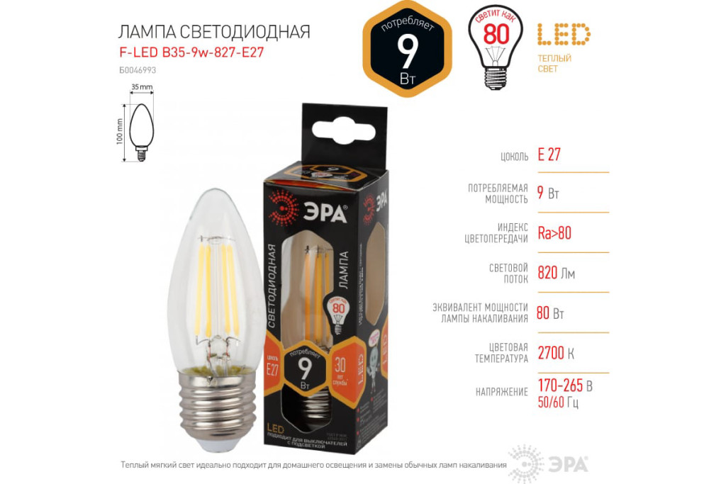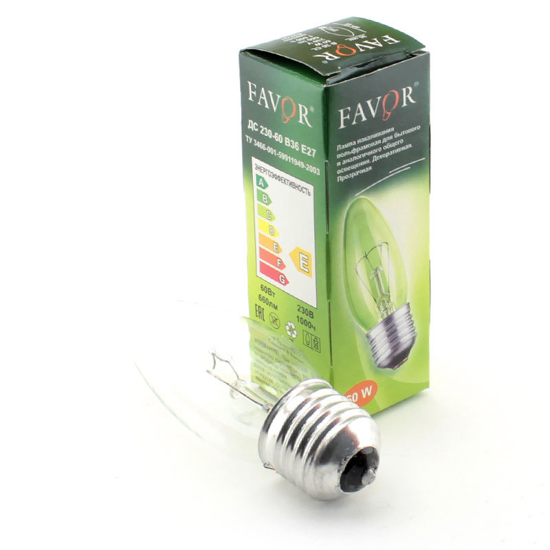 Лампа накал. Favor B36 60W E27 CL свеча пр.