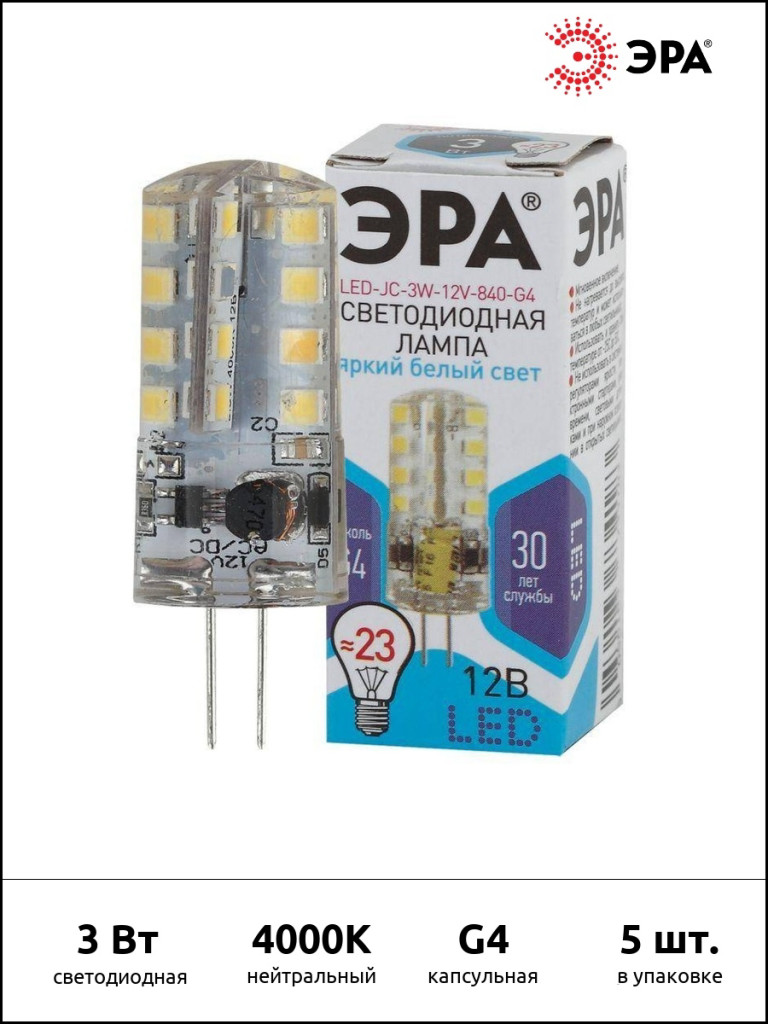 Лампа св/диод. ЭРА LED JC-3W-12V-827-G4 (диод,капсула,тепл)