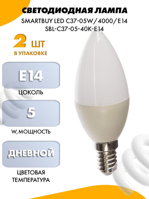 Лампа св/диод. Smarbuy СВЕЧА C37-9,5W/E14/4000 SBL-C37-9_5-40K-E14