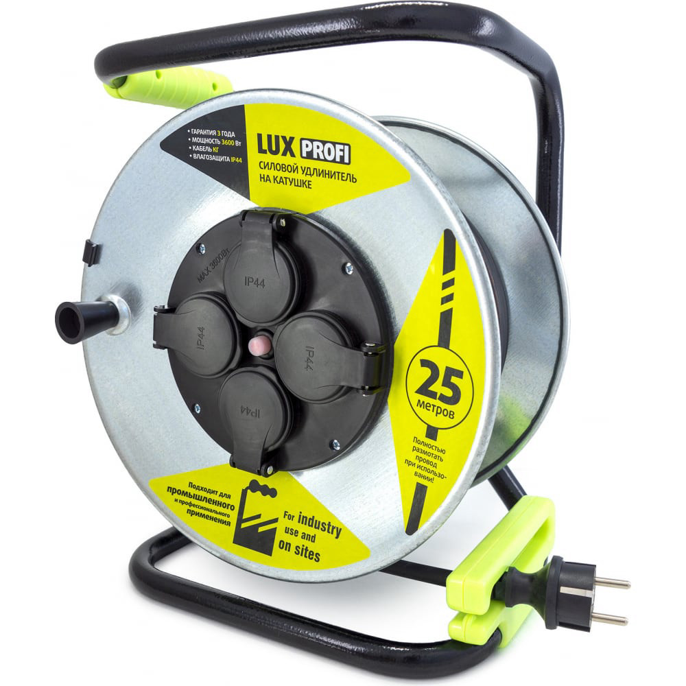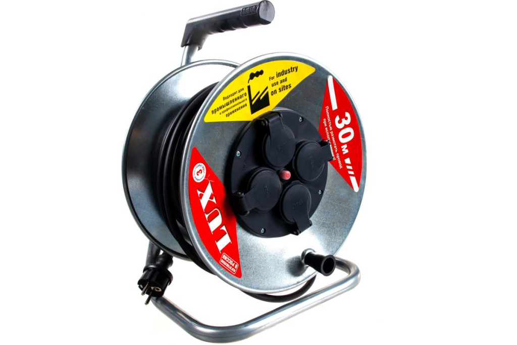 Удл-ль силовой на металл.кат. LUX К4-Е-30 КГ 3x2.5 30м 16А 4 роз. с з/к, защитой и крышк. IP44 55130