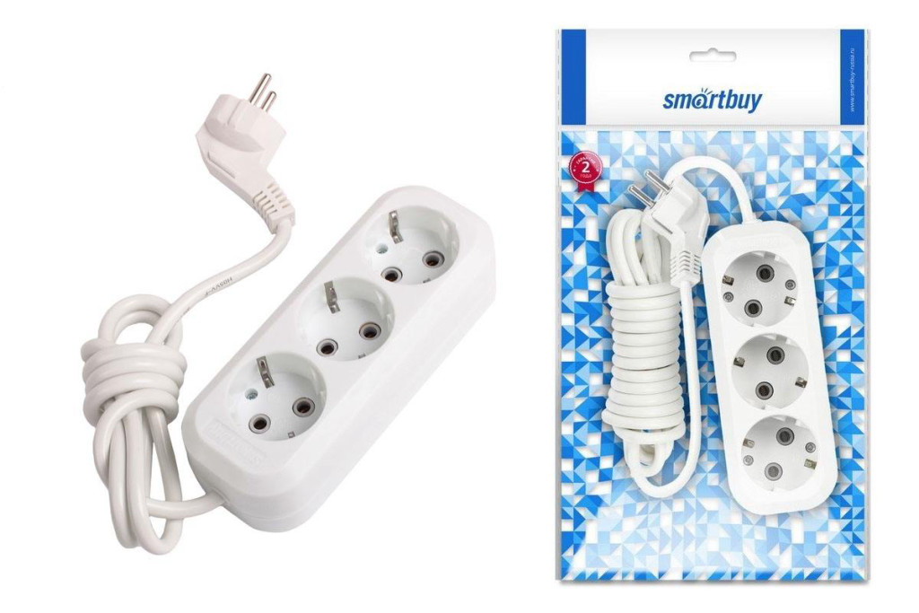 Удлинитель Smartbuy 4 гнезда 2м 16А/3.5кВт c выкл и зазем.ПВС 3*1,0 SBE-16-4-02-ZS