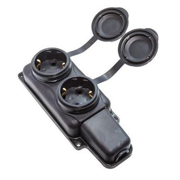 Розетка переносн. РП 16-232 разборн.2 гнезда с з/к и крышкой 250В 16А, IP44 черная