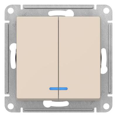 Выключатель двухклавишный ATLASDESIGN с подсветкой 5а 10AX механизм бежевый