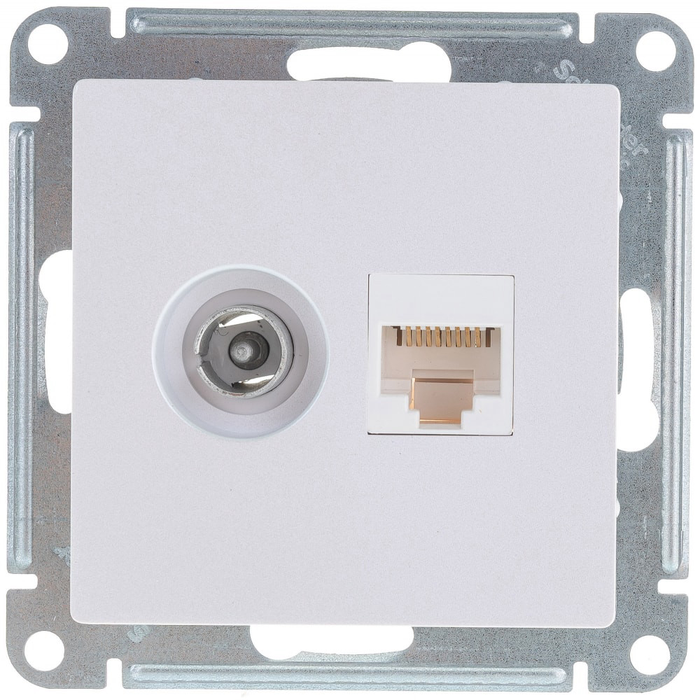 Розетка ATLASDESIGN двойная ТВ + компьютерная RJ45 категория 5Е белый