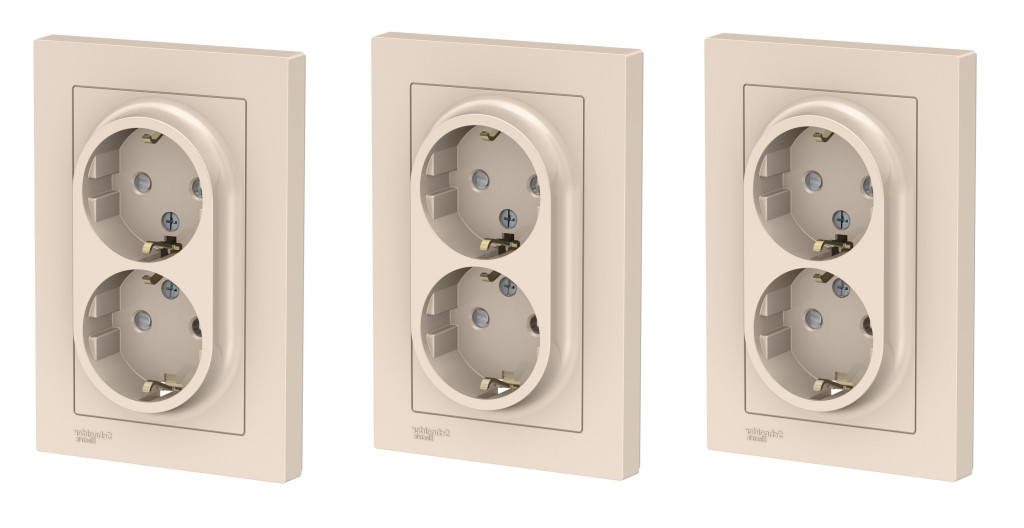 Розетка ATLASDESIGN двойная с заземлением со шторками 16А в сборе бежевый