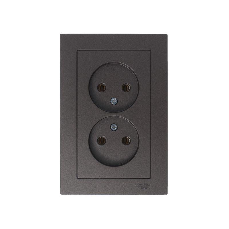 *Розетка ATLASDESIGN двойная без заземления 16А в сборе мокко