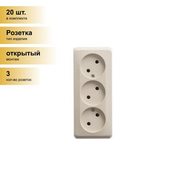 Розетка Этюд РА16-009K ОУ 3 мест. крем. (пласт.осн.)
