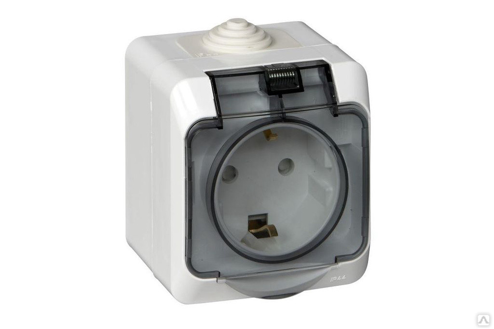 Розетка Этюд РА16-044В ОП с з/к с крышкой белый 16А lP44