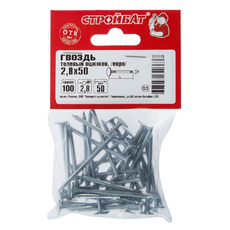 Гвозди стр. оцинк 2,0*50 (100 г)