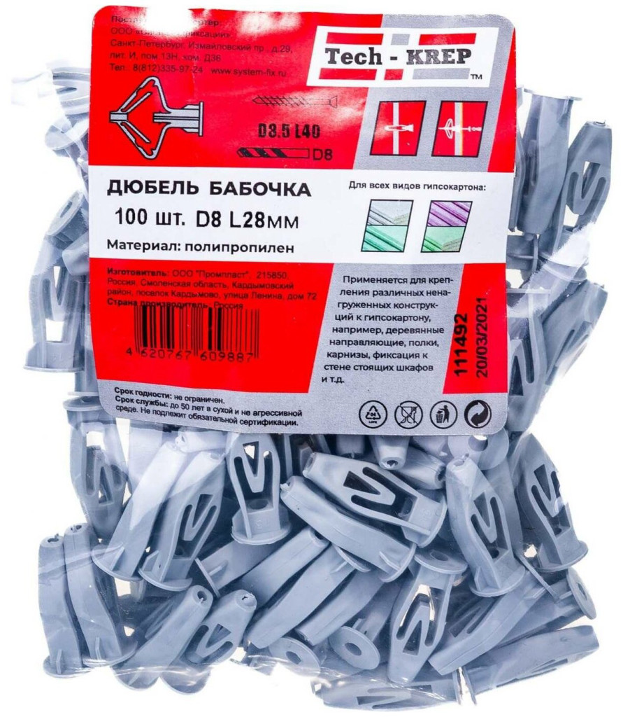Дюбель анкер Бабочка полипр. 8*28 30 шт