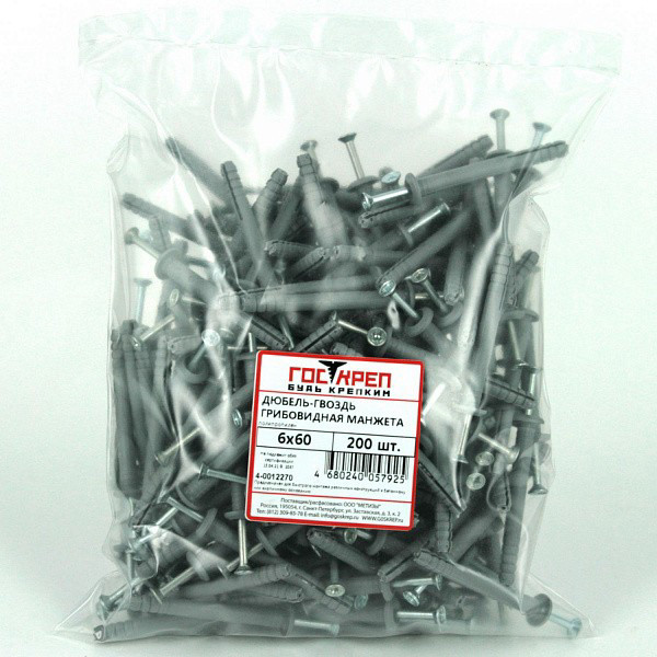 Дюбель-гвоздь 6*40 гриб.манжета п/пр 16 шт