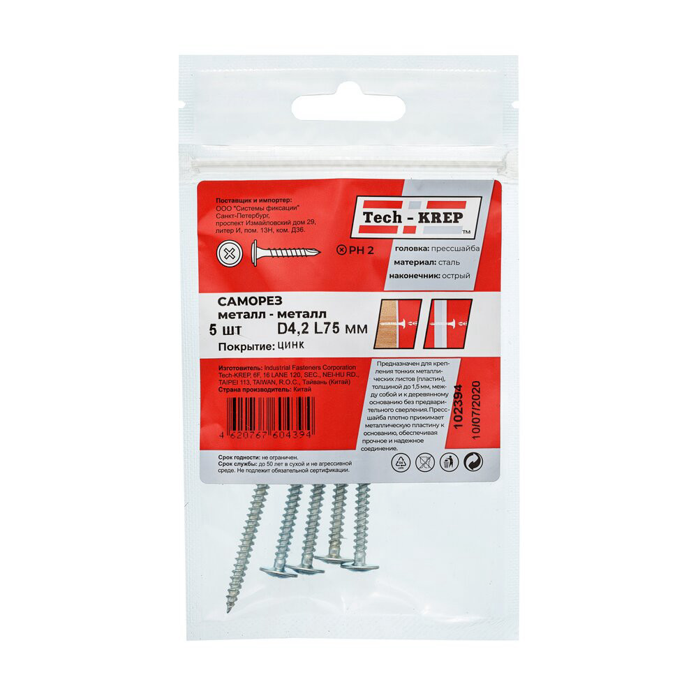 Саморезы металл-металл 4,2*75 (5шт) пакет