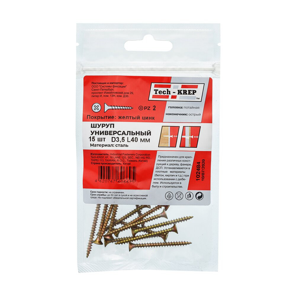 Саморезы унив.желтые 3,5*40 (15шт)