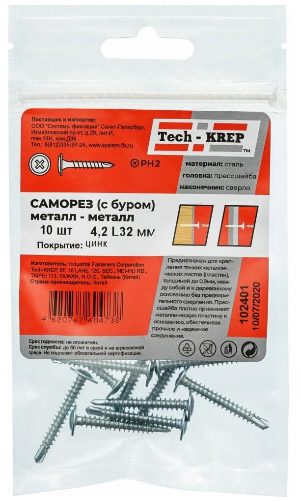 Саморезы металл-металл 4,2*32 (10шт) св. пакет