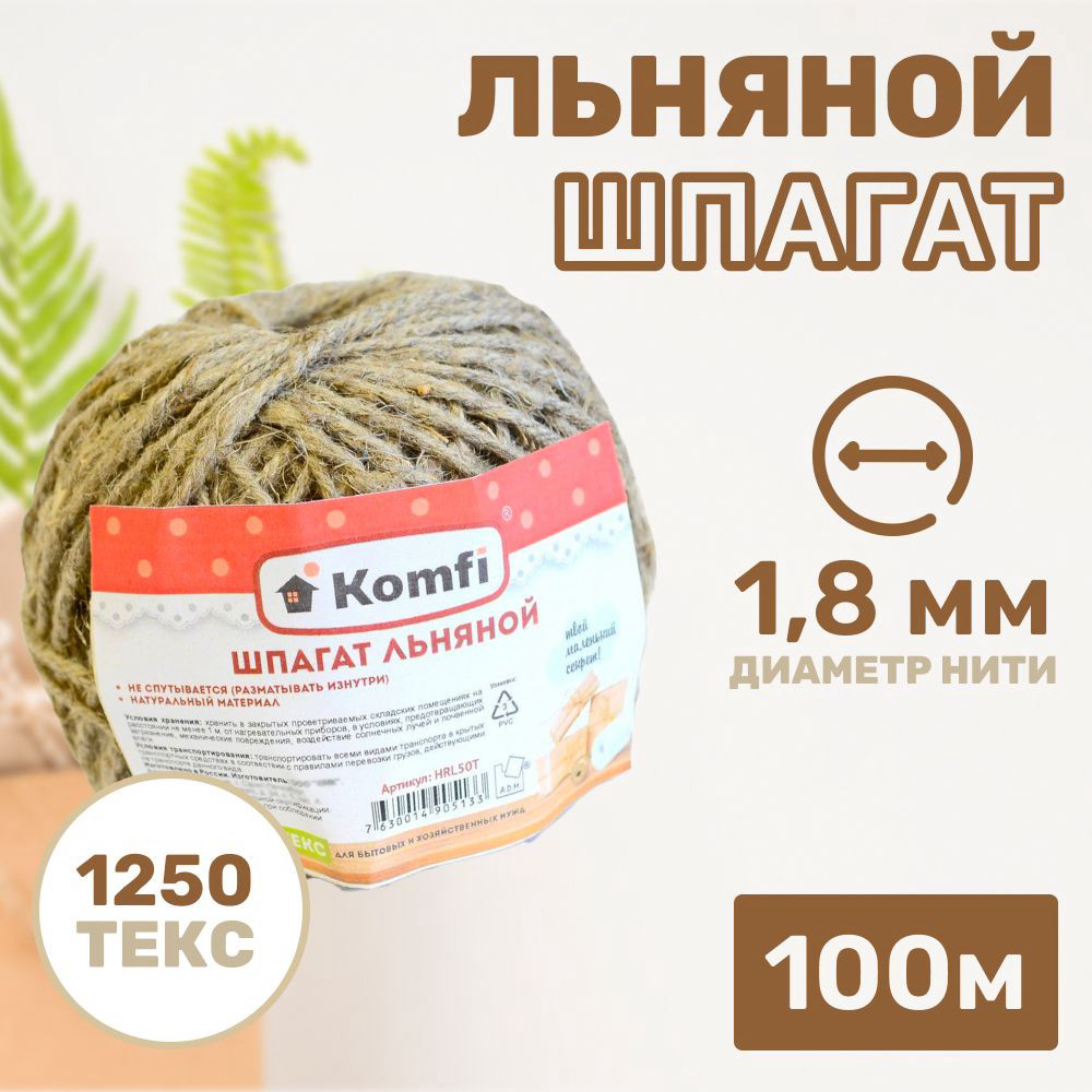 Шпагат льняной 50м 1250 текс komfi HRL050T/60