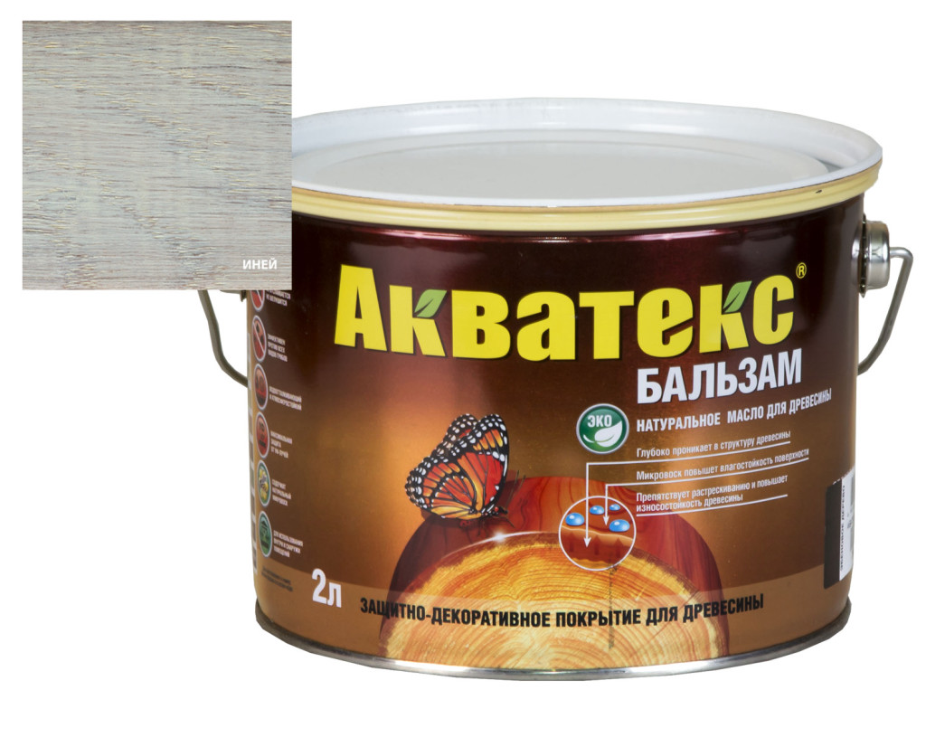 Антисептик Акватекс-бальзам натуральное масло для древесины иней 2 л