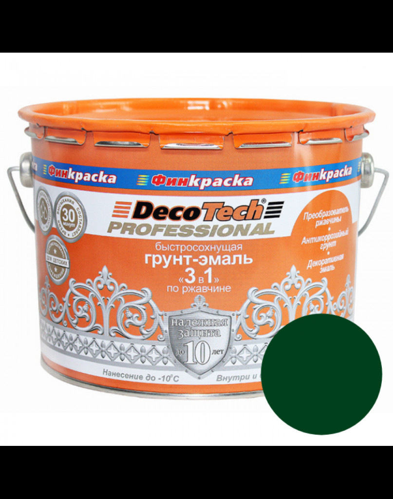 Грунт-эмаль 3в1 DecoTech зеленая под RAL6005 10кг