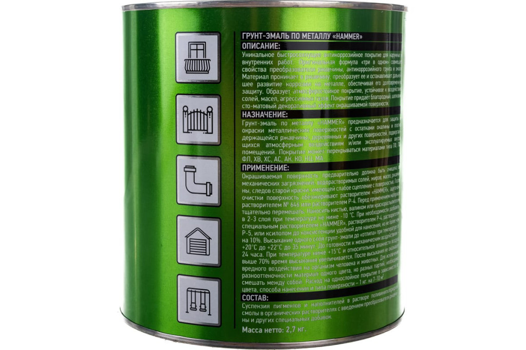 Грунт-эмаль по металлу HAMMER белый (ф.-2,7кг)"4