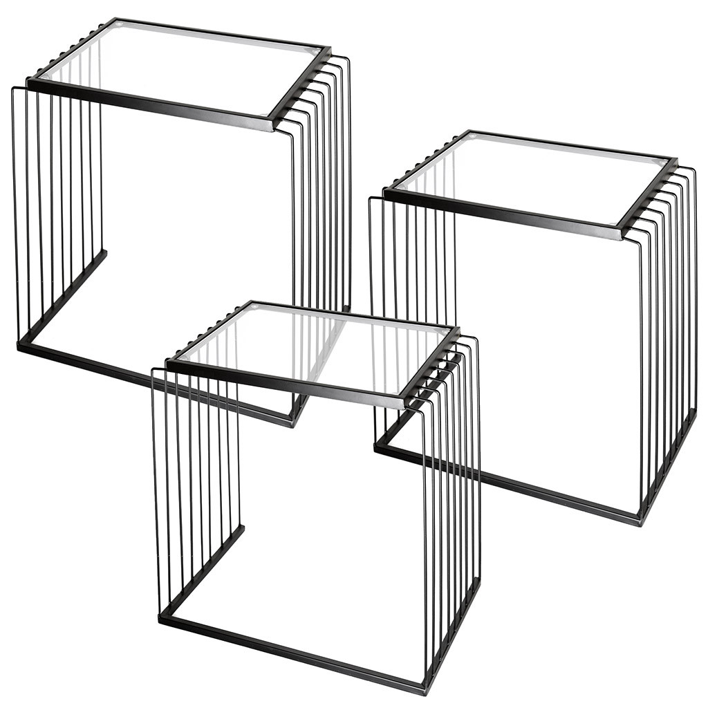 Стол дизайнерский набор 3шт мет/каркас черн/мат столешница/стекло
