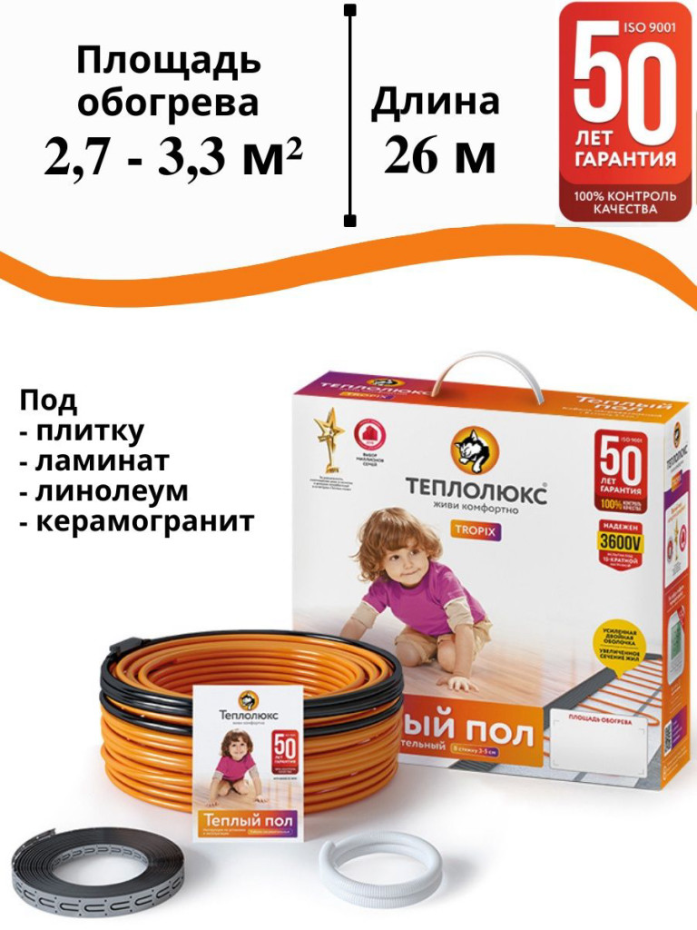 Кабель "Теплолюкс TROPIX " ТЛБЭ 26,0м/520Вт