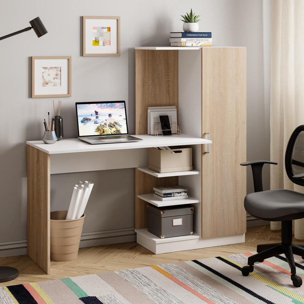 Стол компьютерный Бейсик (Дуб сонома/Белый) Трия