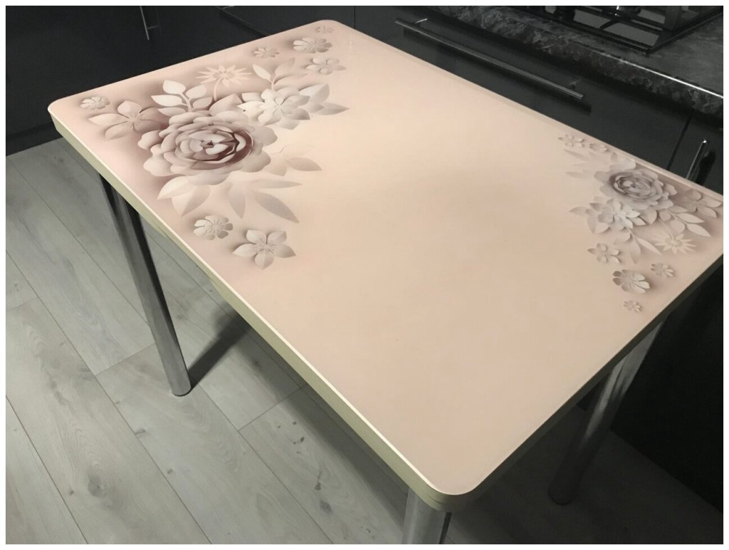 Стол СМАРТ ФОТОПЕЧАТЬ бежевый (дуб молочный)/кофейные цветы