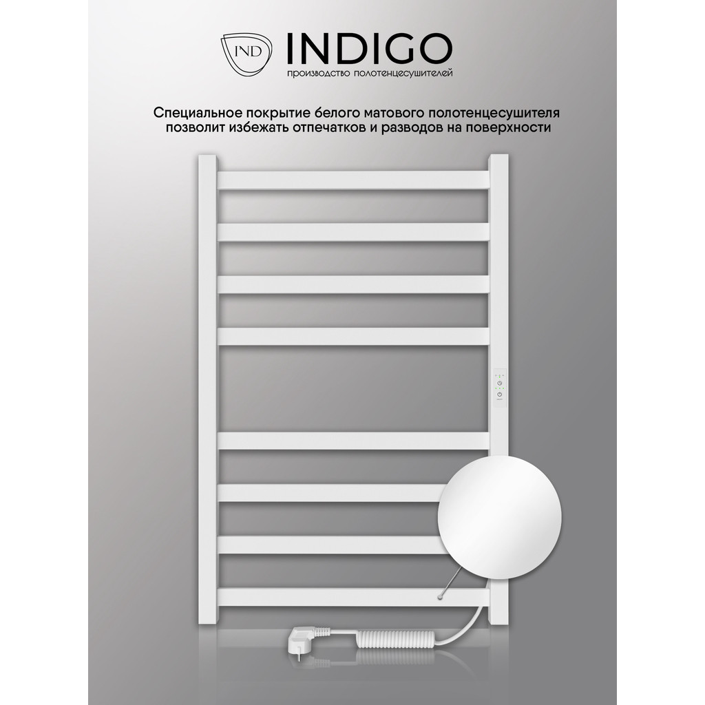**Полотенцесушитель Hit (electro) 80/50 (скр.монтаж, унив.подкл.R/L, Полиров.) INDIGO
