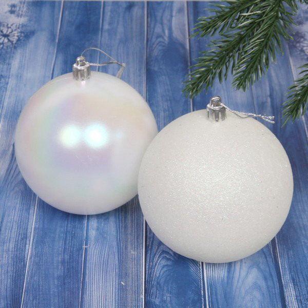 Шары новогодние 10 см (набор 2 шт) "Микс фактур", Белый/перламутр