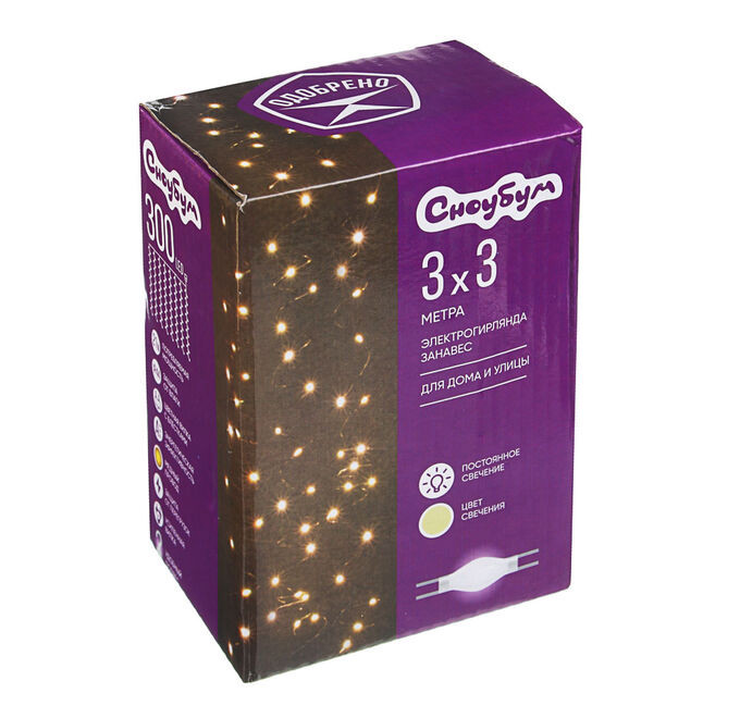 Гирлянда эл. СНОУ БУМ занавес нить 300 LED, 3х3м, 10 нитей, шампань, пост. свечение,медь, 220В, 50Гц
