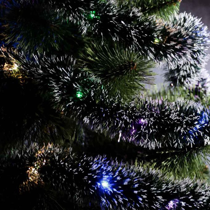 Гирлянда эл. СНОУ БУМ с зелен.мишурой с бел.кончик.,7х220см,нитка росы,пост.свеч.,мильтицвет,2хАА,ПВ