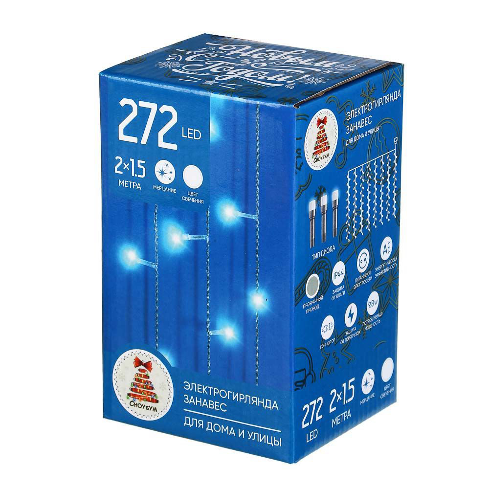 Гирлянда эл. СНОУ БУМ занавес 2x1,5м, 272LED*белый, мерцание., ПВХ черный, коннектор, 220В