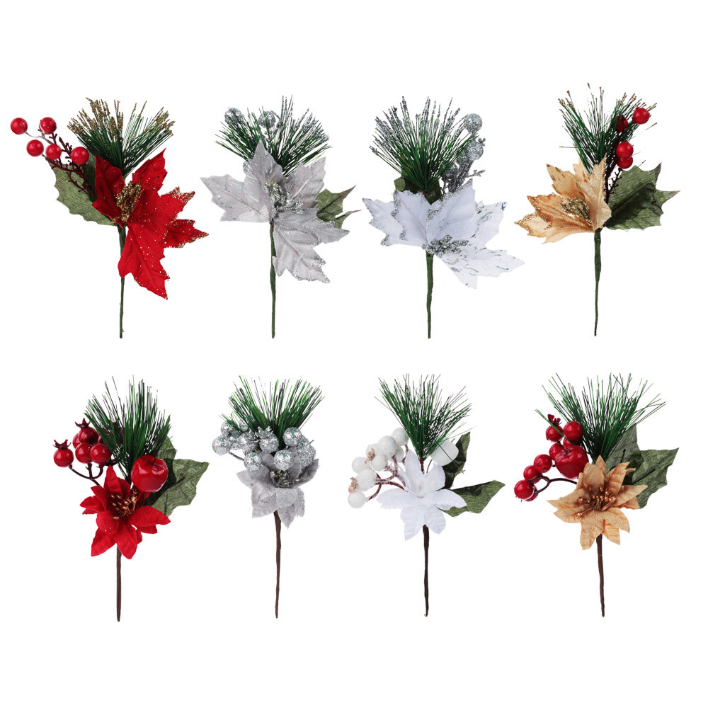 Украшение декоративное СНОУ БУМ в виде веточки с цветком, текстиль, пластик, 17-19см, 8 видов