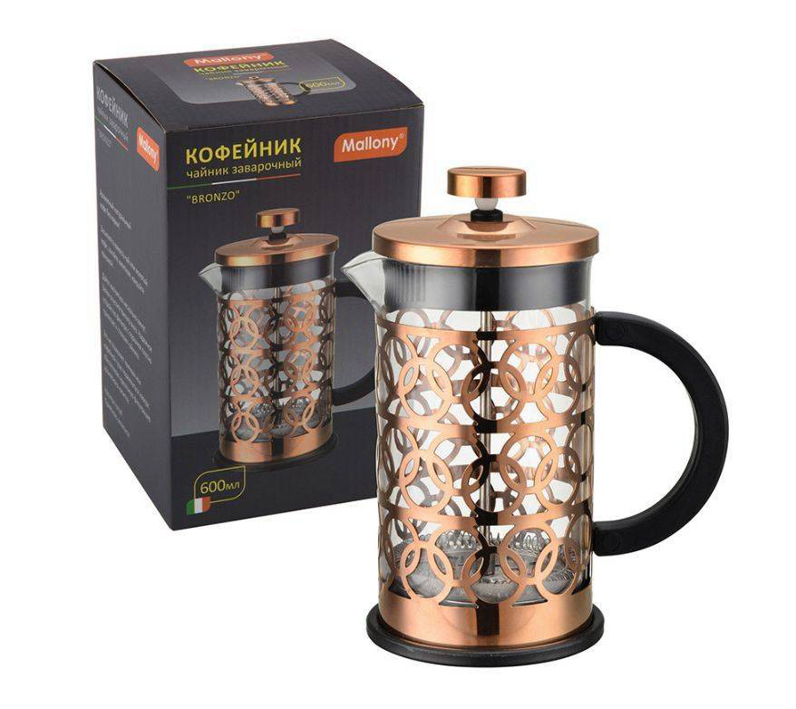 Чайник/кофейник (кофе-пресс) BRONZO 600 мл боросил ст. нерж ст
